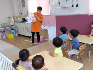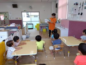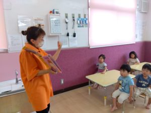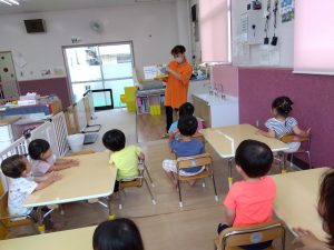1歳児さんに「here you are!」と保育者が言った後の「チェンキュウー」が本当に可愛らしくて、何度も繰り返し言ってます