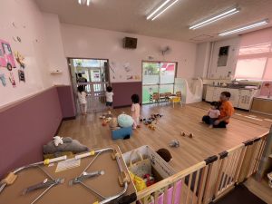 これまでなのはな保育園の床はじゅうたんだったのですが、松田町役場にて改修工事をして頂きフローリングになりました