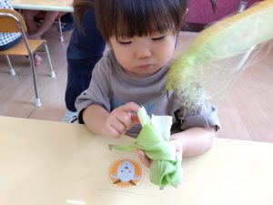 見慣れないので手を出さない子もいれば、興味津々に触れる子もいました ![]()