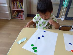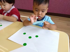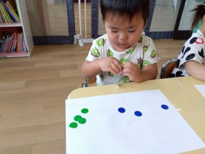 暑い日が続いていたのもあり、室内でシールを貼って遊ぶこともしました