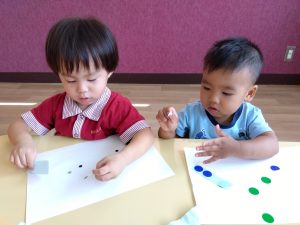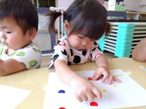 もも組さんのお友達も指先を器用に使ってシール貼りを楽しんでいました