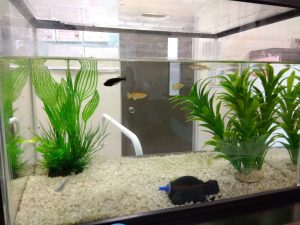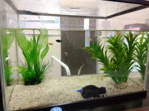 水槽は玄関に設置されていますので、子供達も保護者の方もみんなで眺めて楽しんでいます