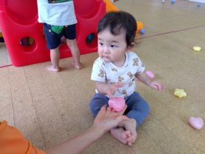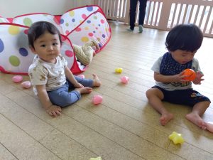 0歳児クラスのお友だちも元気いっぱい遊んでいますよ