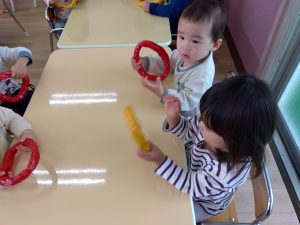 0歳児のお友達もとても集中して保育者を見つめる姿も可愛らしかったです