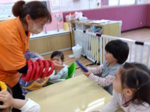 以前にもアクティビティで使用した事があり、何枚か出てくる事を知っているお友達が「まだ、ある!まだ、ある!」と次々に出て来るのを楽しみにしている様子がありました