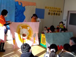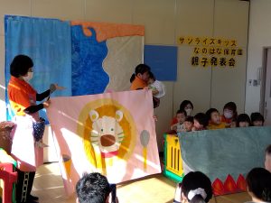 もも組&いちご組さんは「らいおんさんカレー」という演目でした ![]()