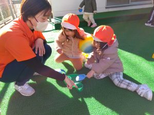 天気が良い日は毎日のように園庭遊びをしたりお散歩に出かけています