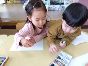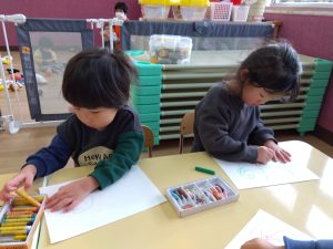 戸外遊びが好きな子どもたちですが、製作活動やお絵描きも大好きです