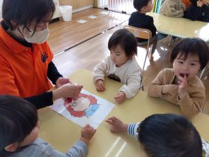 なのはな保育園の子どもたちは絵本が大好きなお友だちが多いので、みんな真剣な表情で見ていました