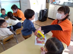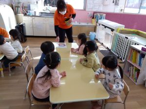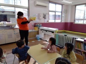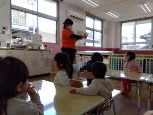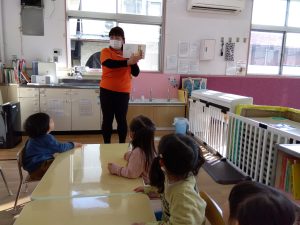 なのはな保育園の子どもたちは絵本が大好きなお友だちが多いので、みんな真剣な表情で見ていました