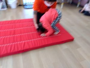 2歳児クラスのお友だちは前転に挑戦しています