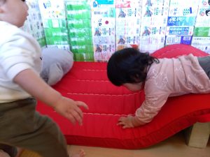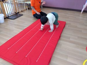 0歳児クラスのお友だちもマットに挑戦