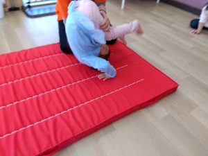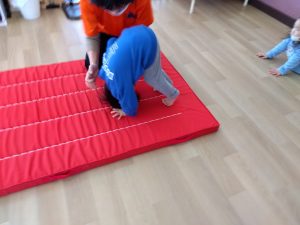 2歳児クラスのお友だちは前転に挑戦しています
