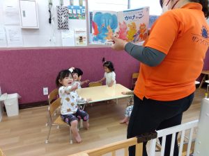 絵本を読み終わり、「今度、かけっこしたいお友だち~」と尋ねると、