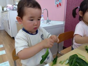子どもにとって青菜である小松菜は少し苦手意識を持つ子が多いので、