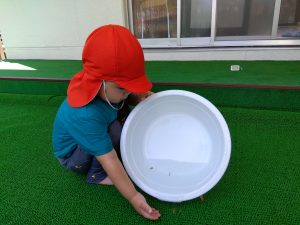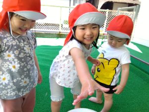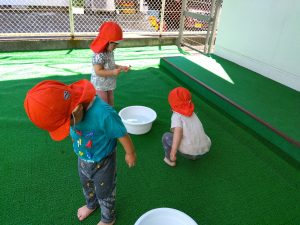 気温が高くなってきたので、お水を使って遊んだりして楽しんでいます