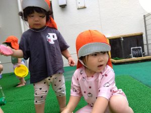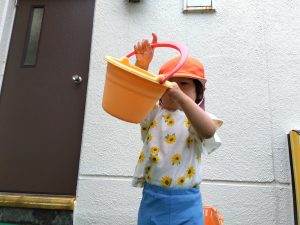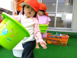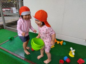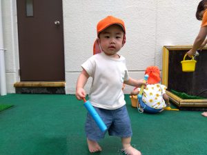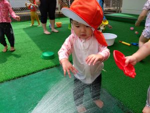 保育者に水をかけて欲しくて近づいてきてはニコニコしながら逃げていくお友だちもいました