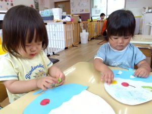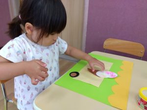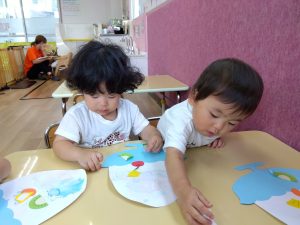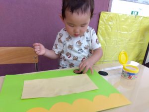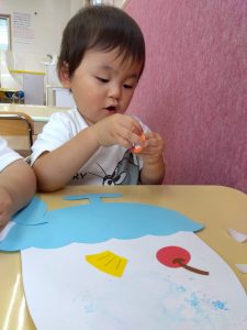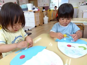 糊付けしたアイスを持って保育者と一緒に歌ったりして楽しみました