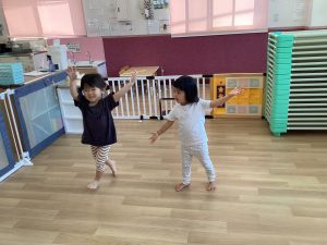 難しいですが皆で同じ動きをするのを楽しんでいるようです![]()