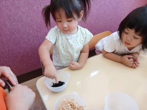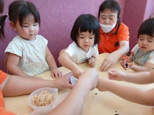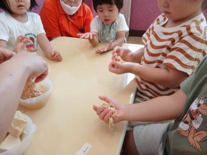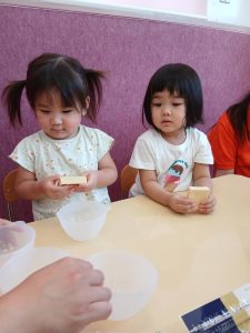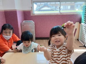 給食や食卓でも見たことのある食材にニコニコしながら触れていた子どもたちでした