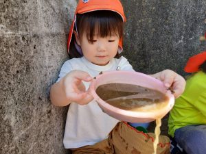 水を使って遊ぶと、ダルゴナコーヒーのようなドリンクを作ってくれたお友だち