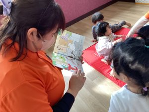 この絵本は、サンライズキッズ保育園で定期購読できる絵本の1冊になります