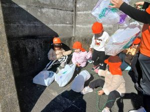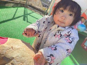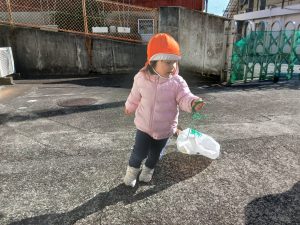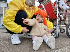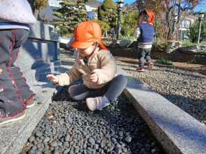 0歳児クラス、1歳児クラスのお友だちは、園庭で遊んだりお散歩に出かけました
