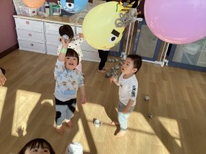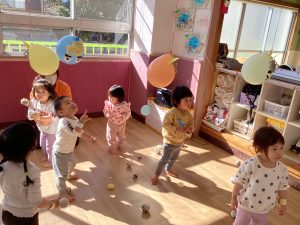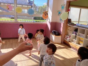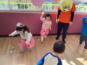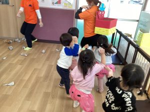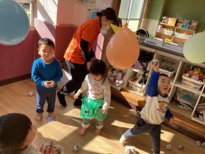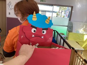 豆入れゲームをしたり風船鬼に当てるゲームをして楽しむことが出来ました