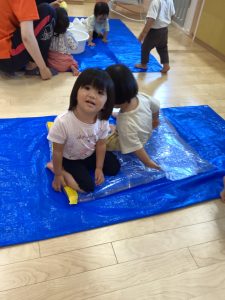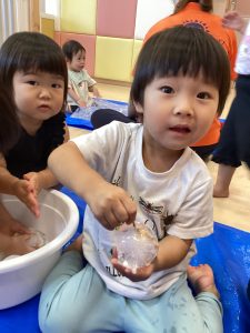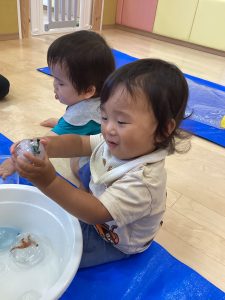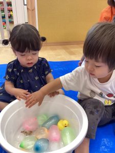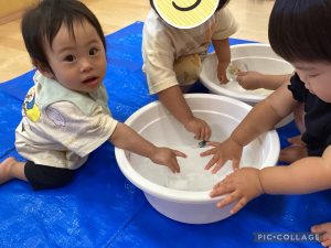 こんにちは😃サンライズキッズ保育園西松ヶ丘園です🍉毎日暑い日が続いていますね💦今日は熱中症アラートの為、お部屋で氷遊びや水風船など、夏ならではの遊びを楽しみましたよ🤗