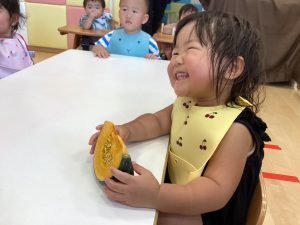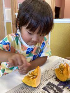食育🎃かぼちゃの種取りをしました😊