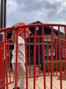 西松ケ丘公園では、大きな遊具が盛りだくさん✨1番大好きな滑り台は保育者と一緒に楽しんでいますよ☺️