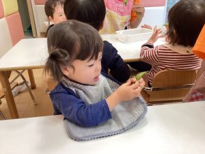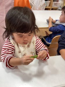 今週の食育活動は枝豆のサヤ取りを行いました🫛🎵