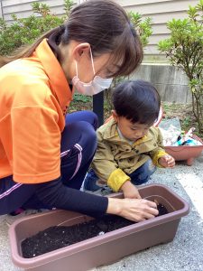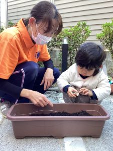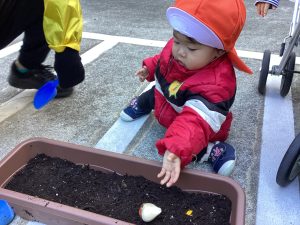いちご組さんも「球根を植えてみよう🤗🎵」