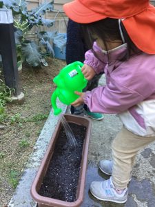 最後は「おおきくなあれ〜🌷🌷🌷」と言いながらお水やりをしましたよ🌈