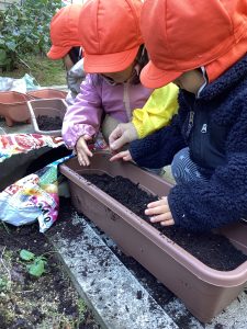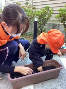 いちご組さんも「球根を植えてみよう🤗🎵」