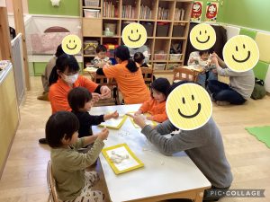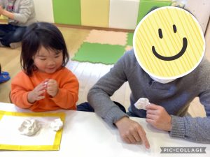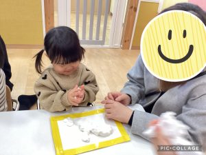 リトミックではリズム遊び、音楽に合わせて雪だるまを作りましたよ⛄️