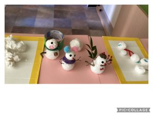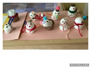 お家の人と一緒なので、普段は使えない道具をたくさん使って可愛い雪だるまがたくさんできましたよ。