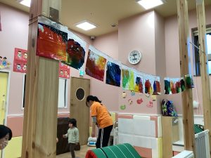 個性溢れる作品が出来上がりました!子ども達はみんなの作品を指差して見ていましたよ。また遊ぼうね!