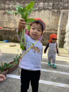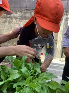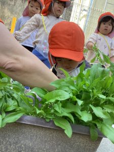 こんにちはサンライズキッズ保育園西松ケ丘園です🎵今日は、昨年度から育てていたほうれん草の収穫をしましたよ💕