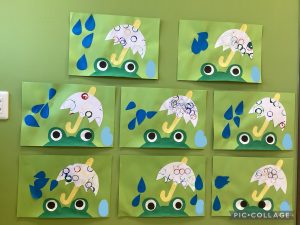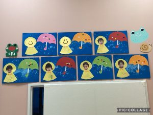 いちご組さんは可愛いレインコートを着たお友だちが傘をさしていますね☂️