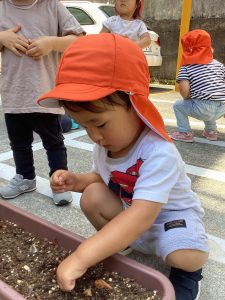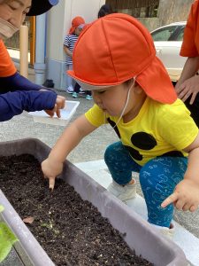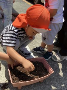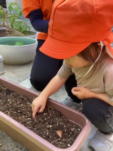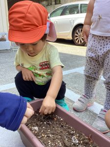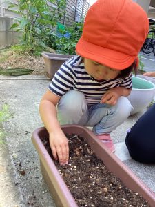 今回はりんご組さんの朝顔植えの様子をお伝えします😁