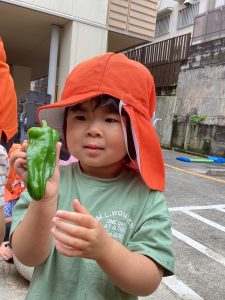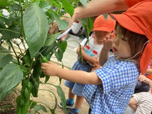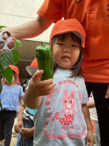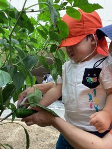 今回は2歳児さんがしたピーマンの収穫の様子をお届けします😀
