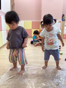 ⭕️まずはウォーターマット!水の入った袋の上に乗って、感触を楽しみましたよ😋