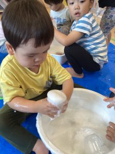泡遊びではふわふわな感触を楽しんでいましたよ🫧