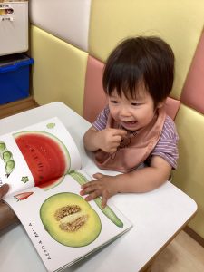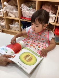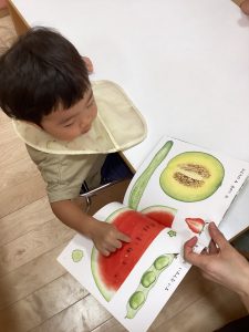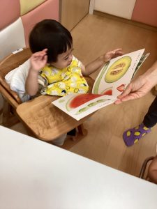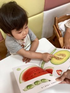 今回は1歳児さんの月刊絵本『みどりのみ あかいみ』を紹介します⭐️