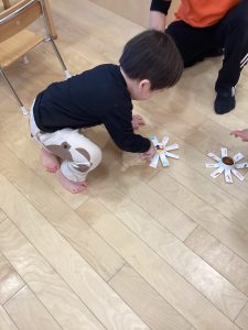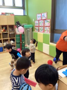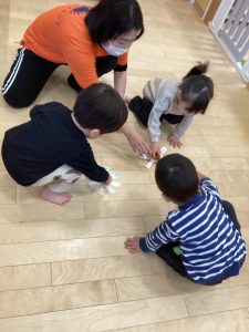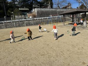 今月は寒い日はお部屋の中で、少しおひさまがでて暖かい日は外に遊びに出ています!