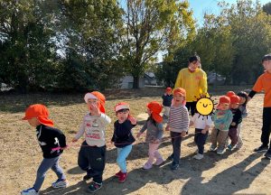 公園やグランドに向かう途中、「せんせい、一緒に走ろう!」と声をかけてくれる子どもたち。