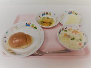 *ロールパン *コーンクリームシチュー *春雨和え *りんご