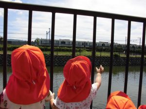 思わず手を振る子供たち。男の子、女の子関係なくみんな電車が大好きです☆