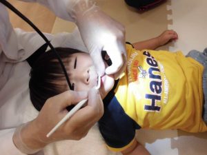 検診が始まると、泣きながらもみんな頑張って歯科検診を受けました。